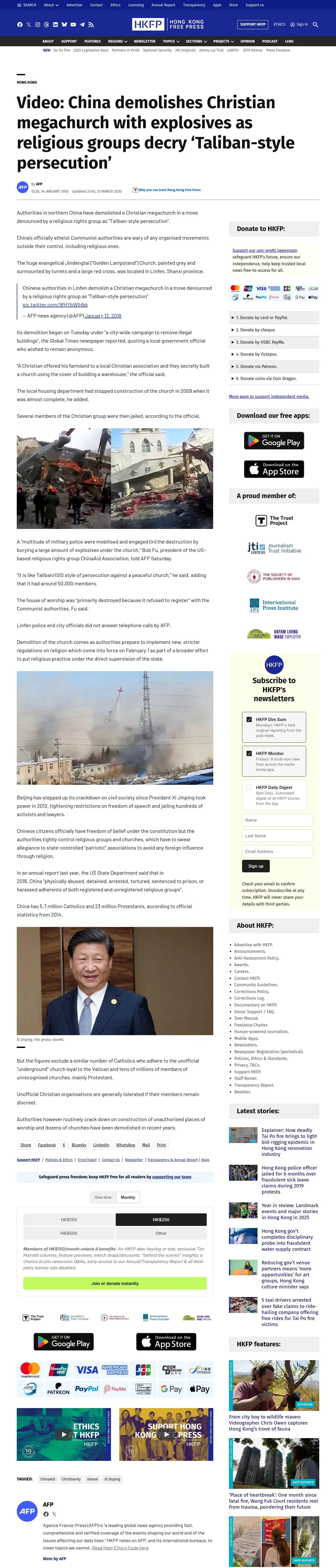 https://hongkongfp.com:443/2018/01/14/video-china-demolishes-christian-megachurch-explosives-religious-groups-denounce-taliban-style-persecution/