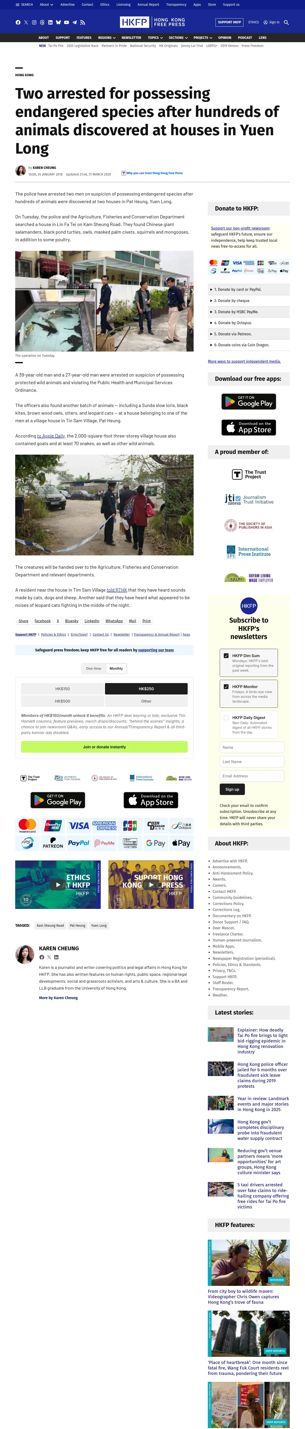 https://hongkongfp.com:443/2018/01/24/two-arrested-possessing-endangered-species-hundreds-animals-discovered-houses-yuen-long/