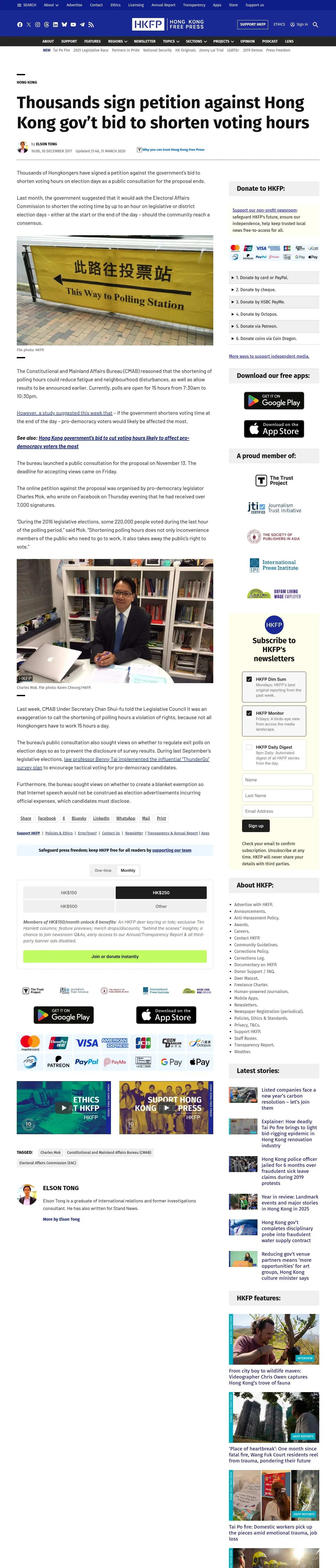 取得元URL: https://hongkongfp.com:443/2017/12/30/thousands-sign-petition-hong-kong-govt-bid-shorten-voting-hours/
