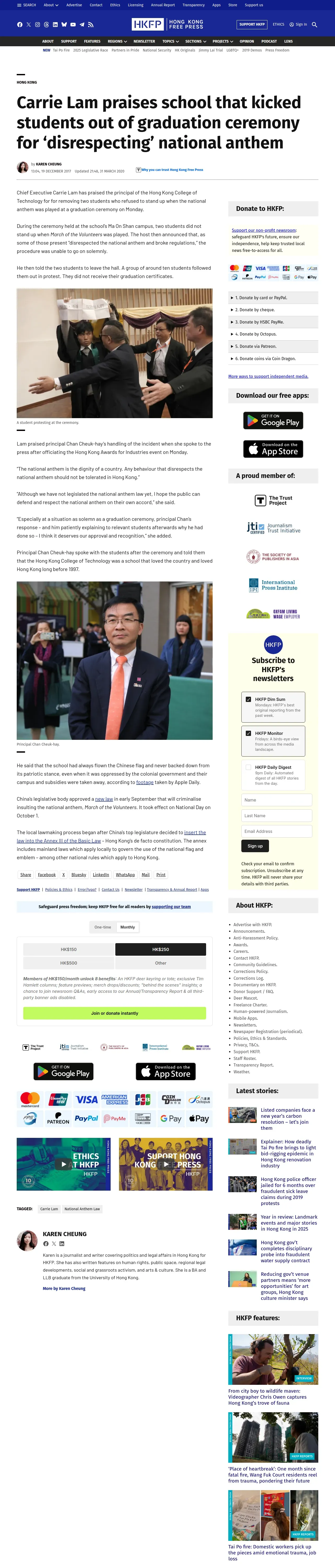 https://hongkongfp.com:443/2017/12/19/carrie-lam-praises-school-kicked-students-graduation-ceremony-disrespecting-national-anthem/