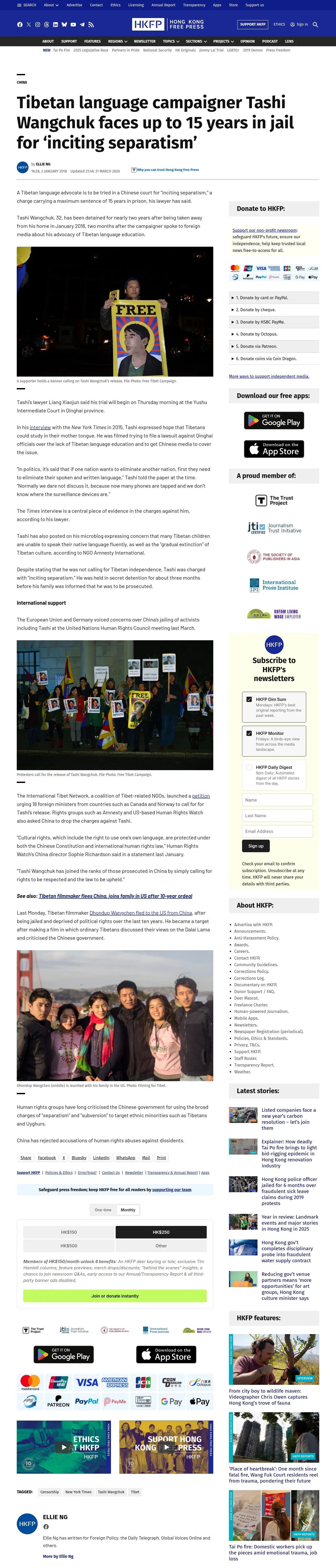 取得元URL: https://hongkongfp.com:443/2018/01/02/tibetan-language-campaigner-tashi-wangchuk-faces-15-years-jail-inciting-separatism/