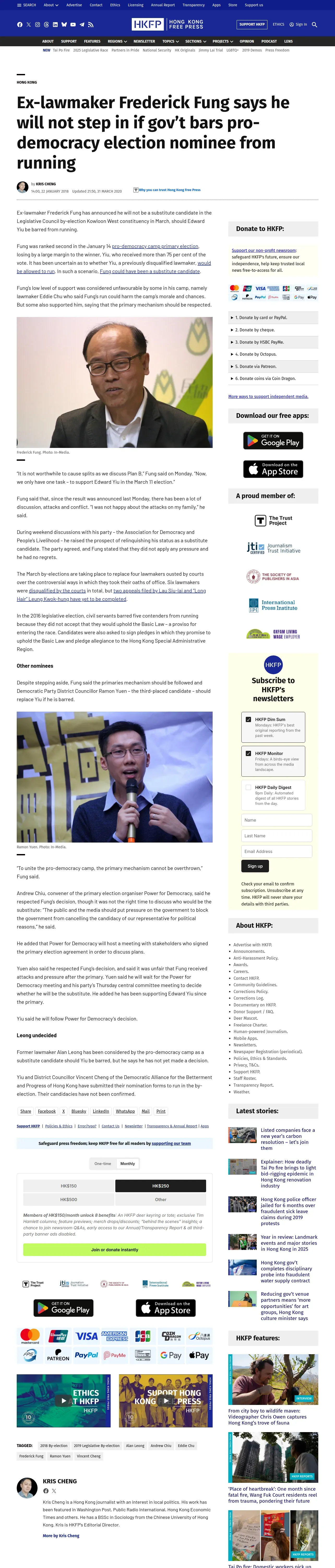 取得元URL: https://hongkongfp.com:443/2018/01/22/ex-lawmaker-frederick-fung-says-will-not-step-govt-bars-pro-democracy-election-nominee-running/