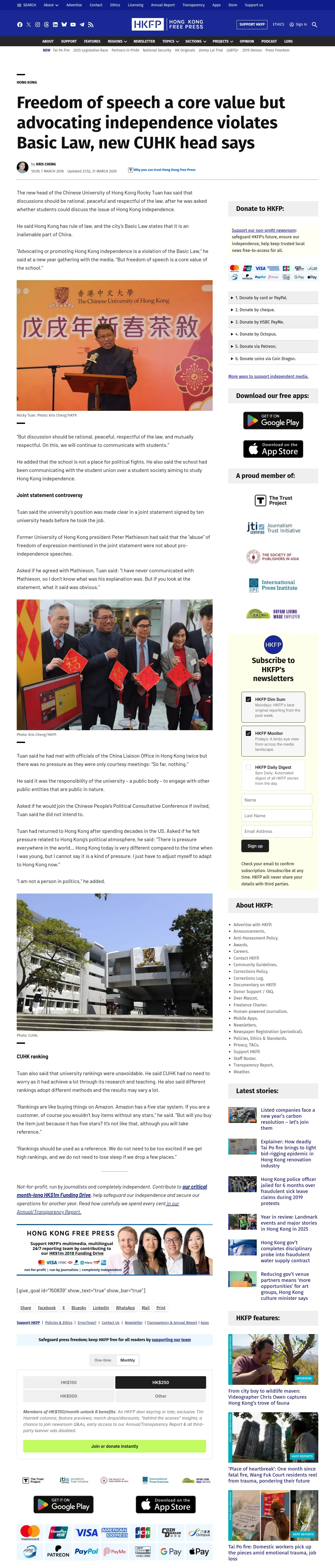 https://hongkongfp.com:443/2018/03/07/freedom-speech-core-value-advocating-independence-violates-basic-law-new-cuhk-head-says/