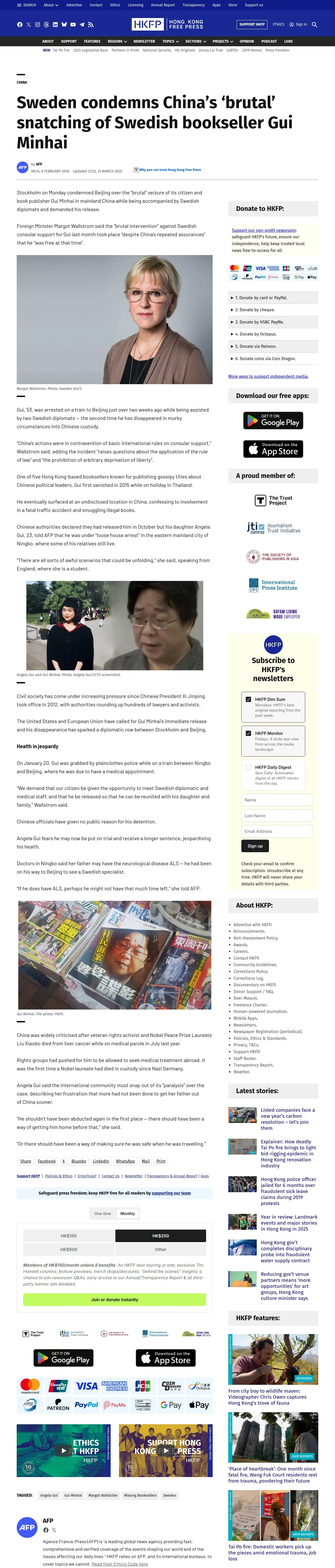 https://hongkongfp.com:443/2018/02/06/sweden-condemns-chinas-brutal-snatching-swedish-bookseller-gui-minhai/