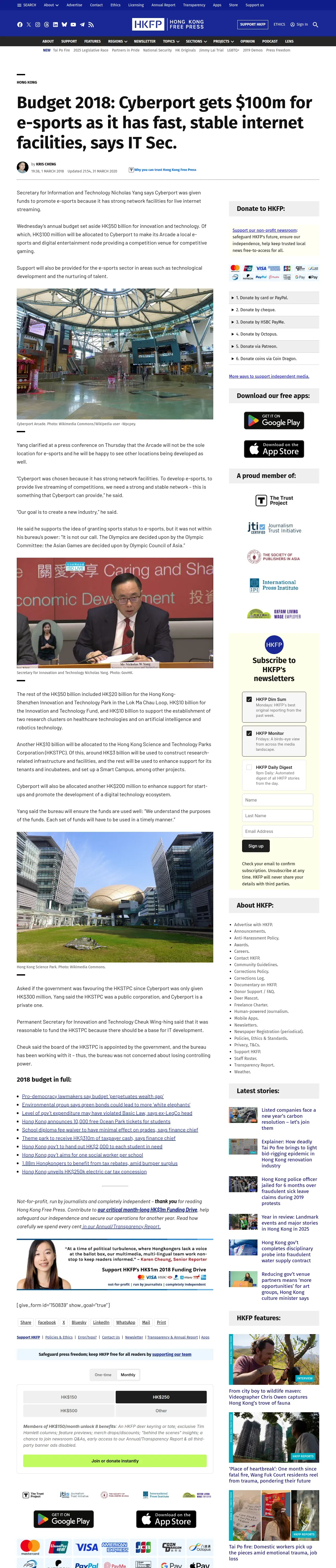 https://hongkongfp.com:443/2018/03/01/budget-2018-cyberport-gets-100m-e-sports-fast-stable-internet-facilities-says-sec/