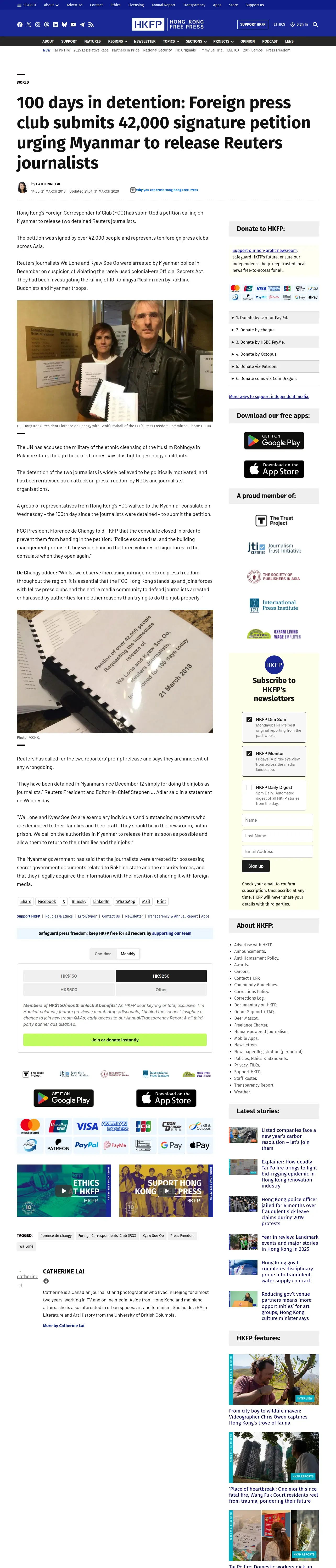 https://hongkongfp.com:443/2018/03/21/100-days-detention-foreign-press-club-submits-42000-signature-petition-urging-myanmar-release-reuters-journalists/