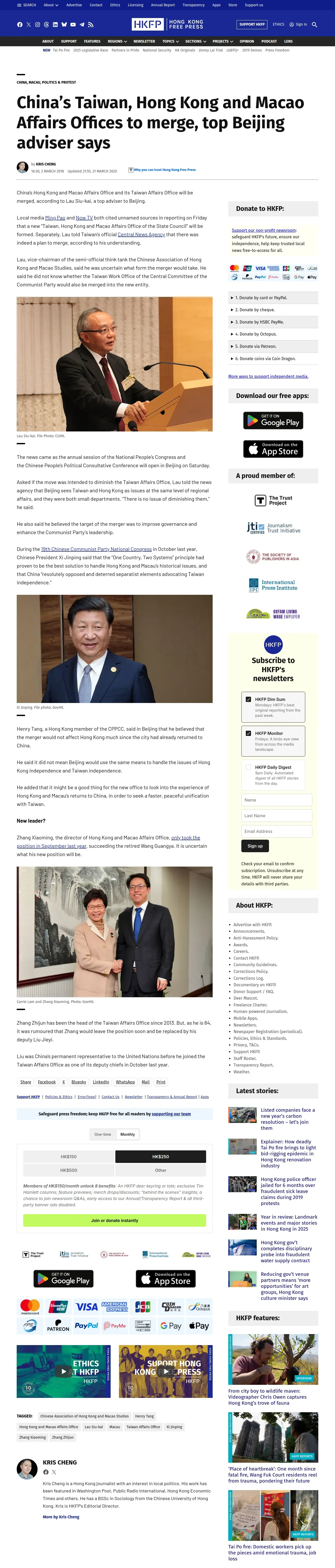 https://hongkongfp.com:443/2018/03/02/chinas-taiwan-hong-kong-macao-affairs-offices-merge-top-beijing-adviser-says/