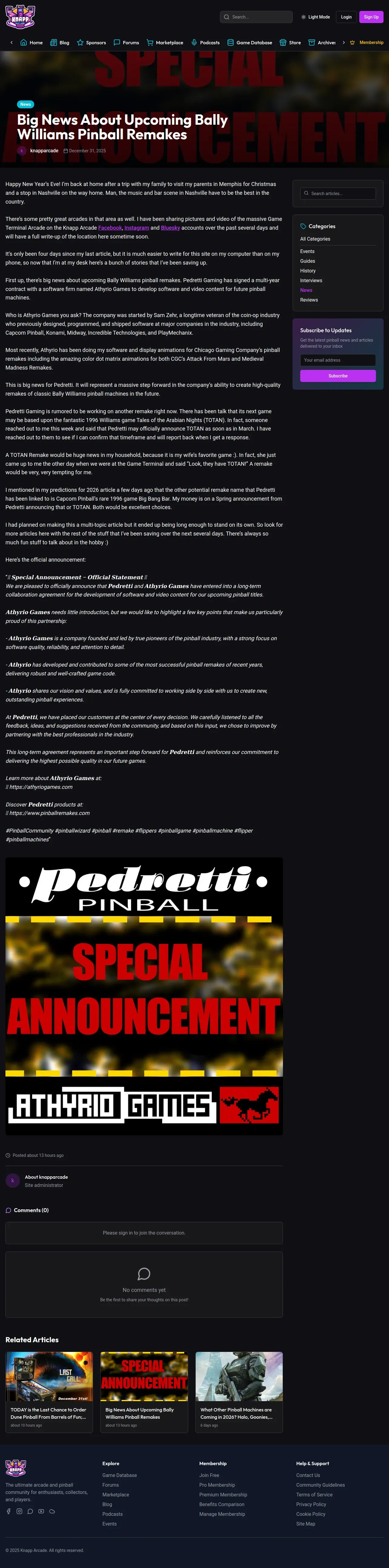 取得元URL: https://knapparcade.com:443/blog/big-news-about-upcoming-bally-williams-pinball-remakes