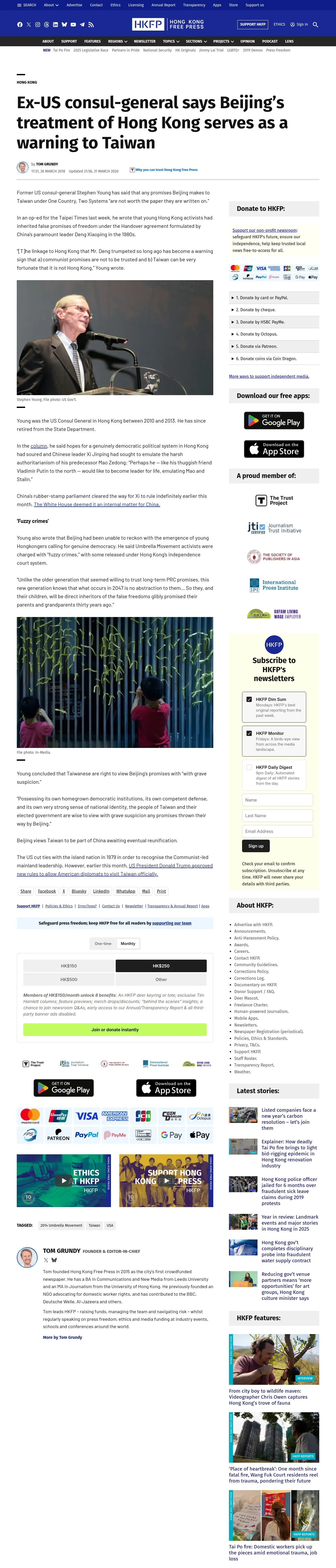 https://hongkongfp.com:443/2018/03/26/ex-us-consul-general-says-beijings-treatment-hong-kong-serves-warning-taiwan/