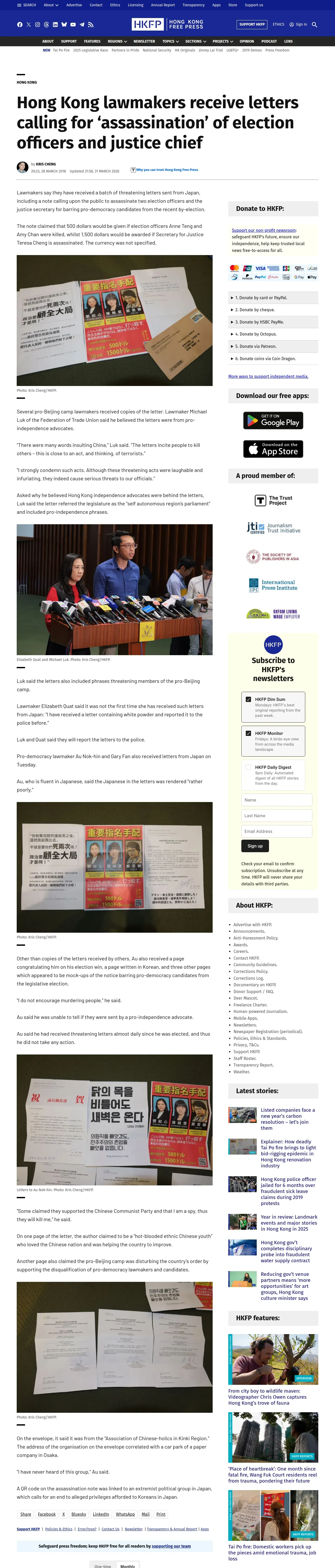 https://hongkongfp.com:443/2018/03/28/hong-kong-lawmakers-receive-letters-calling-assassination-election-officers-justice-chief/