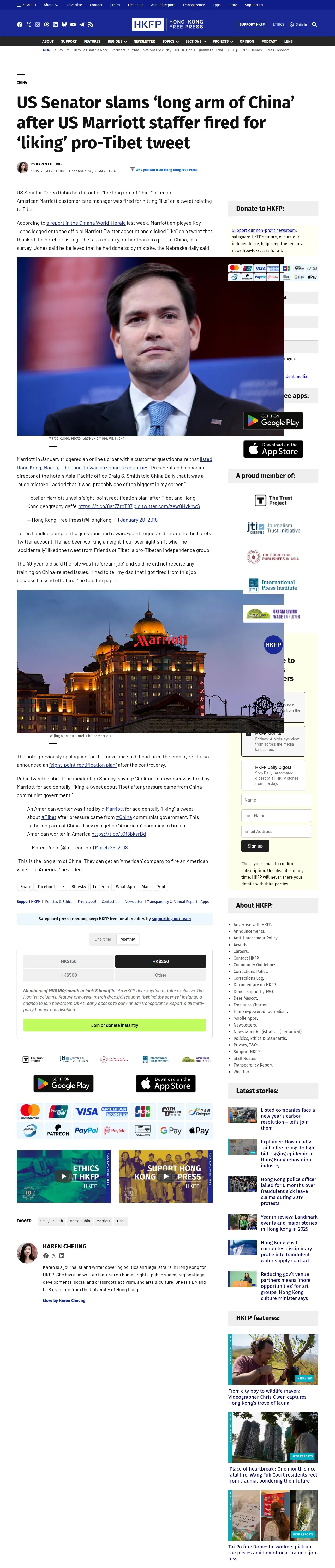 https://hongkongfp.com:443/2018/03/29/us-senator-slams-long-arm-china-us-marriott-staffer-fired-liking-pro-tibet-tweet/