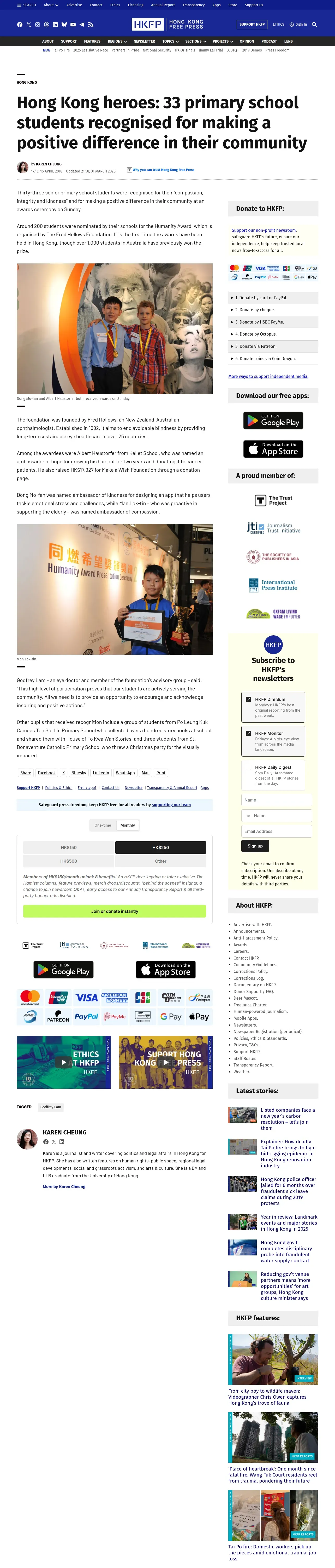 取得元URL: https://hongkongfp.com:443/2018/04/16/hong-kong-heroes-33-primary-school-students-recognised-making-positive-difference-community/