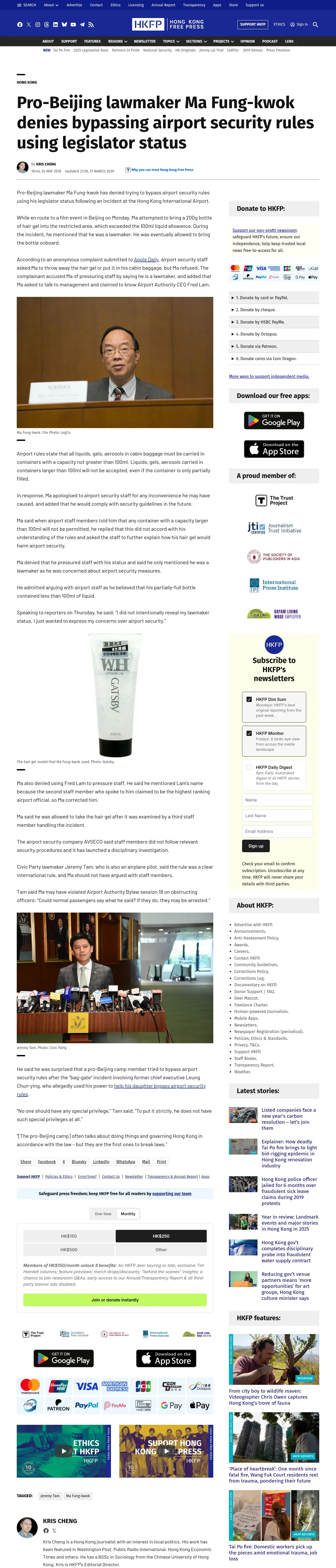 https://hongkongfp.com:443/2018/05/24/pro-beijing-lawmaker-ma-fung-kwok-denies-bypassing-airport-security-rules-using-legislator-status/