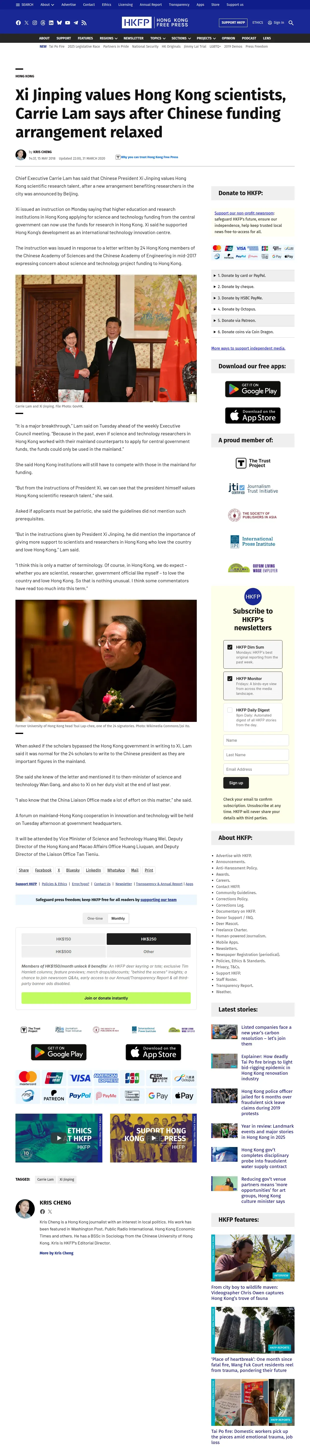 https://hongkongfp.com:443/2018/05/15/xi-jinping-values-hong-kong-scientists-carrie-lam-says-chinese-funding-arrangement-relaxed/
