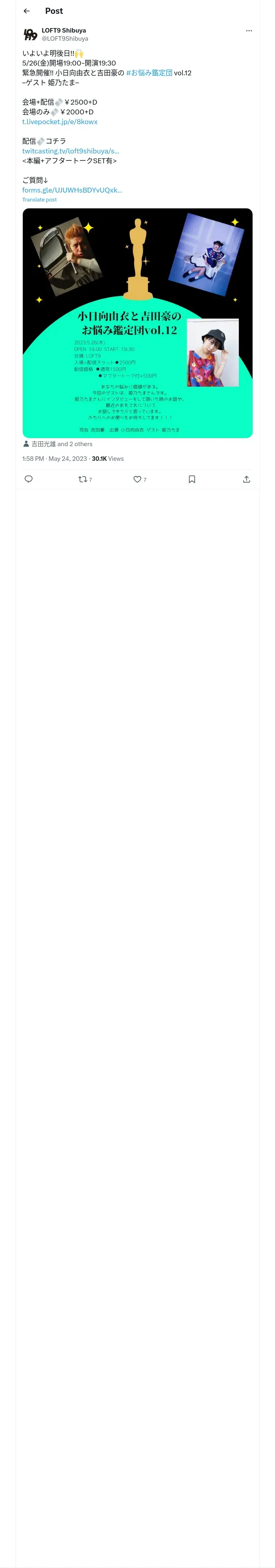 取得元URL: https://x.com:443/LOFT9Shibuya/status/1661235239698694146