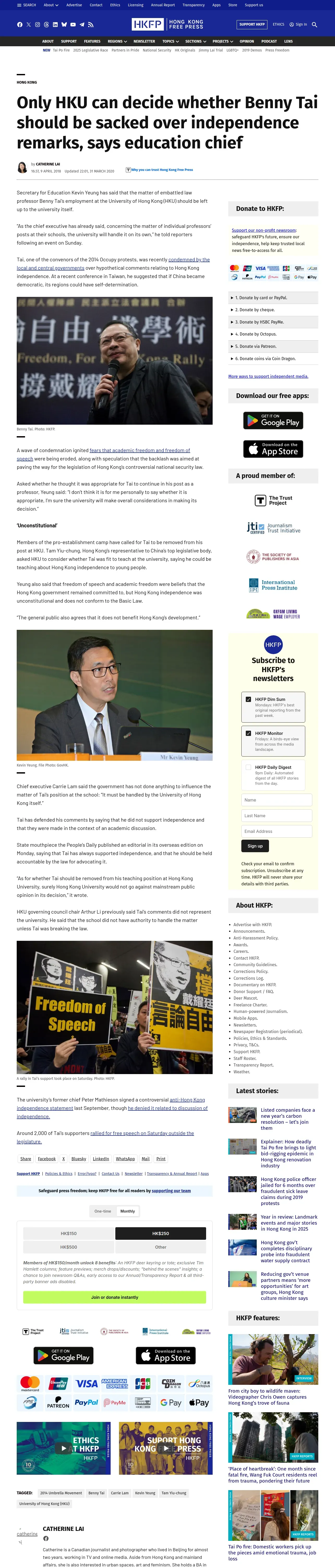 https://hongkongfp.com:443/2018/04/09/hku-can-decide-whether-benny-tai-sacked-independence-remarks-says-education-chief/