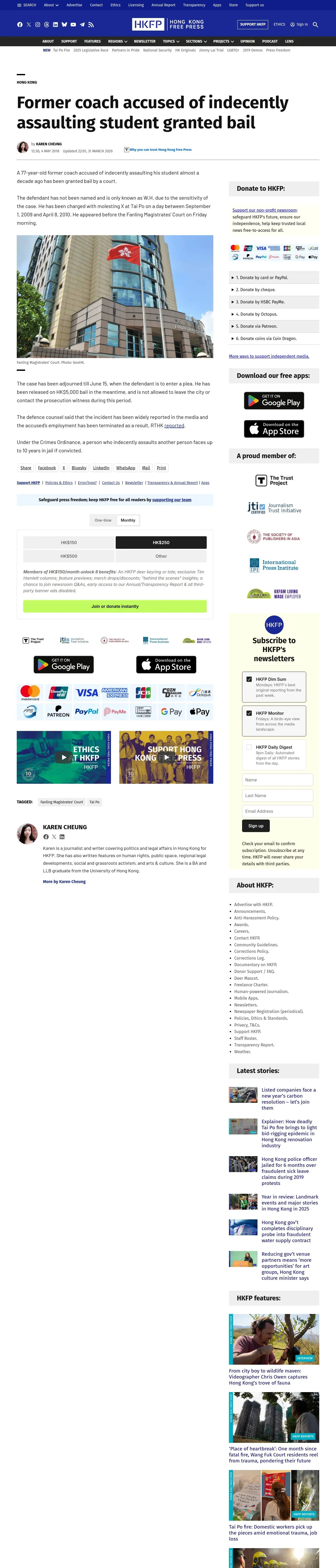 取得元URL: https://hongkongfp.com:443/2018/05/04/former-coach-accused-indecently-assaulting-student-granted-bail/