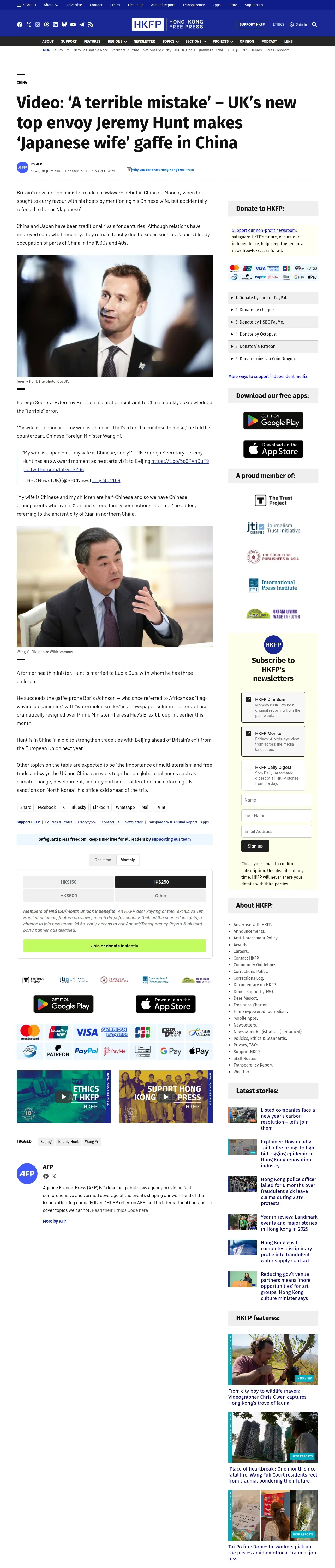 https://hongkongfp.com:443/2018/07/30/terrible-mistake-uks-new-top-envoy-jeremy-hunt-makes-japanese-wife-gaffe-china/