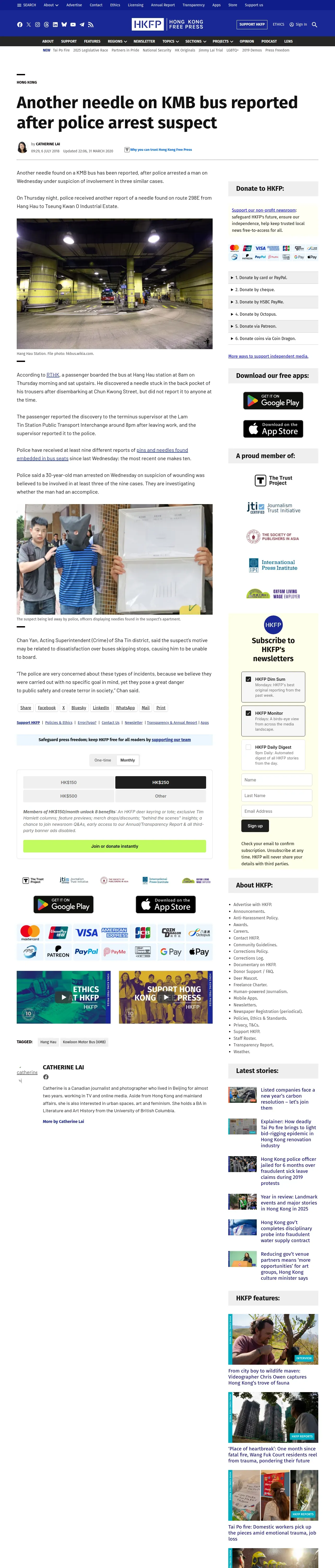 取得元URL: https://hongkongfp.com:443/2018/07/06/another-needle-kmb-bus-reported-police-arrest-suspect/