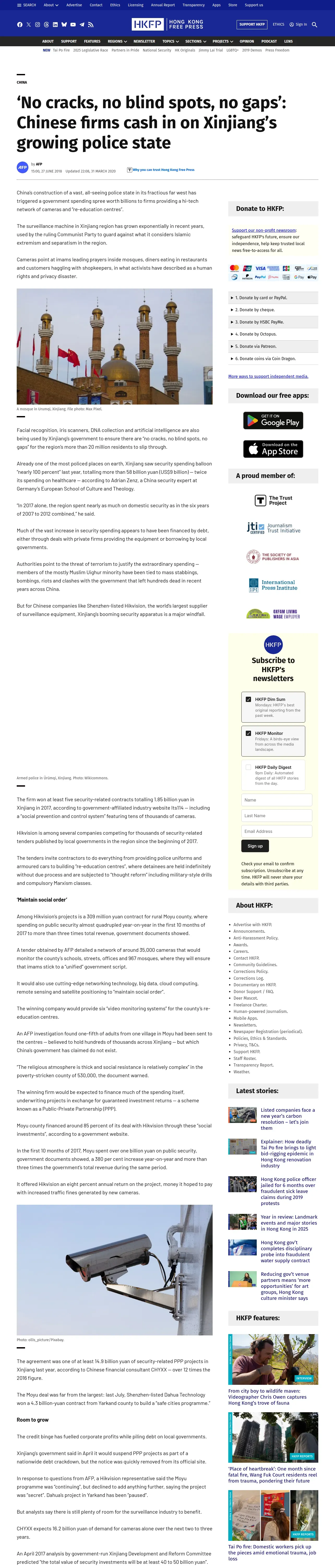 https://hongkongfp.com:443/2018/06/27/no-cracks-no-blind-spots-no-gaps-chinese-firms-cash-xinjiangs-growing-police-state/