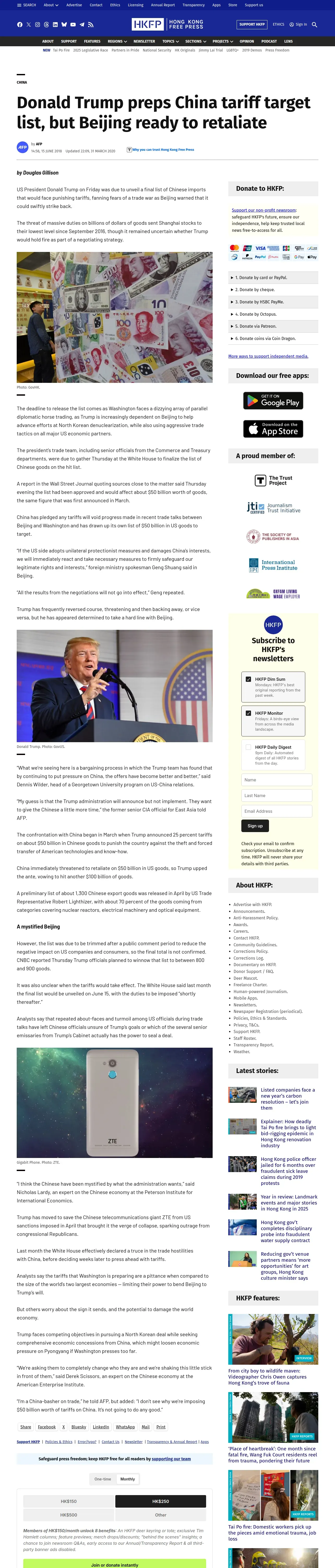 https://hongkongfp.com:443/2018/06/15/donald-trump-preps-china-tariff-target-list-beijing-ready-retaliate/