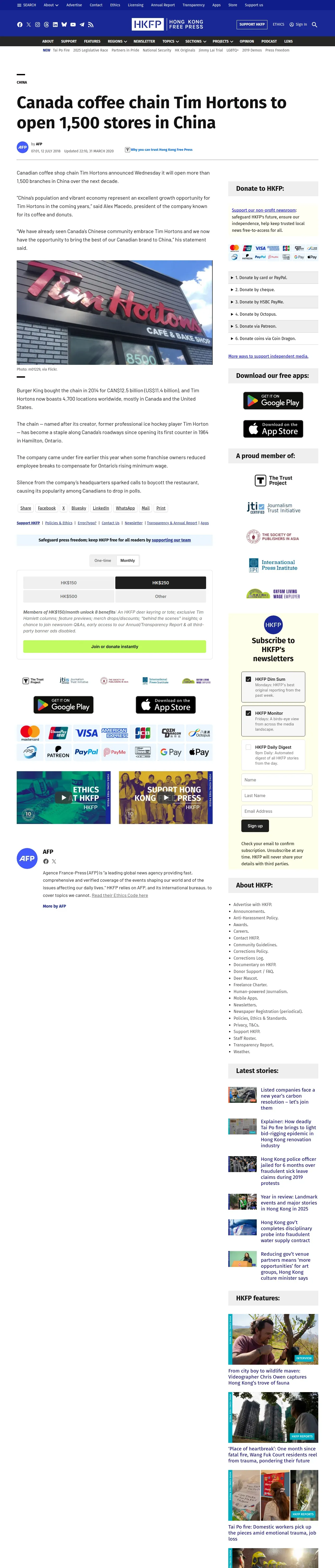 https://hongkongfp.com:443/2018/07/12/canada-coffee-chain-tim-hortons-open-1500-stores-china/