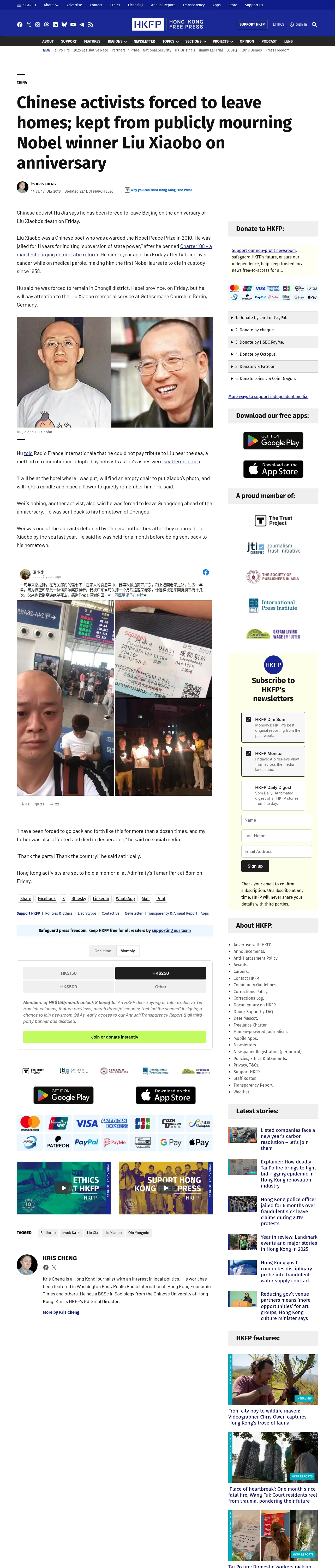 https://hongkongfp.com:443/2018/07/13/chinese-activists-forced-leave-residences-kept-publicly-mourning-nobel-winner-liu-xiaobo-anniversary/