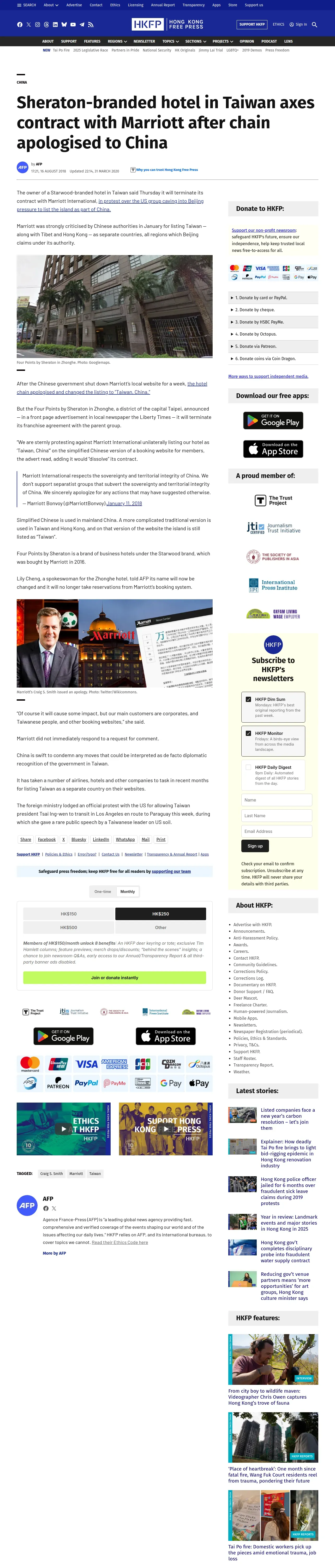 https://hongkongfp.com:443/2018/08/16/sheraton-branded-hotel-taiwan-axes-contract-marriott-chain-apologised-china/