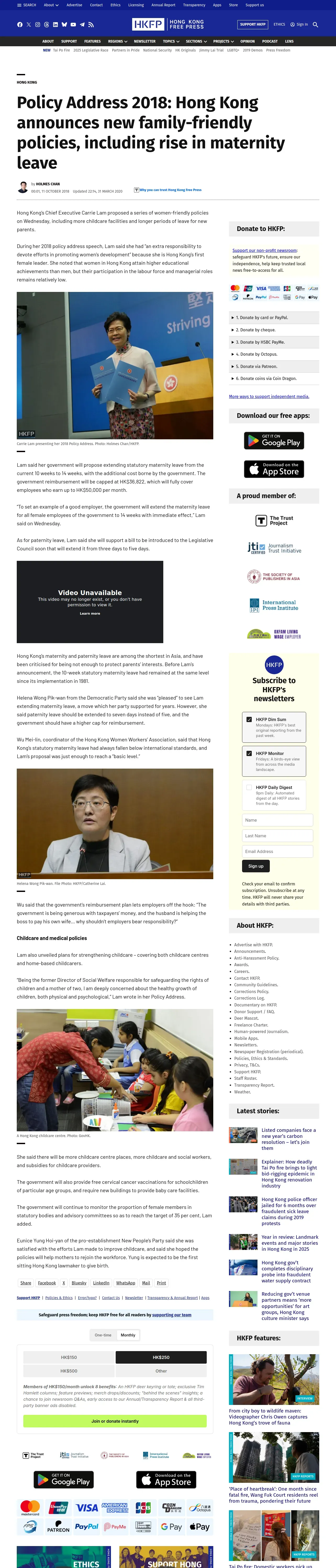 https://hongkongfp.com:443/2018/10/11/policy-address-2018-lam-calls-maternity-leave-14-weeks-supports-paternity-leave-bill/