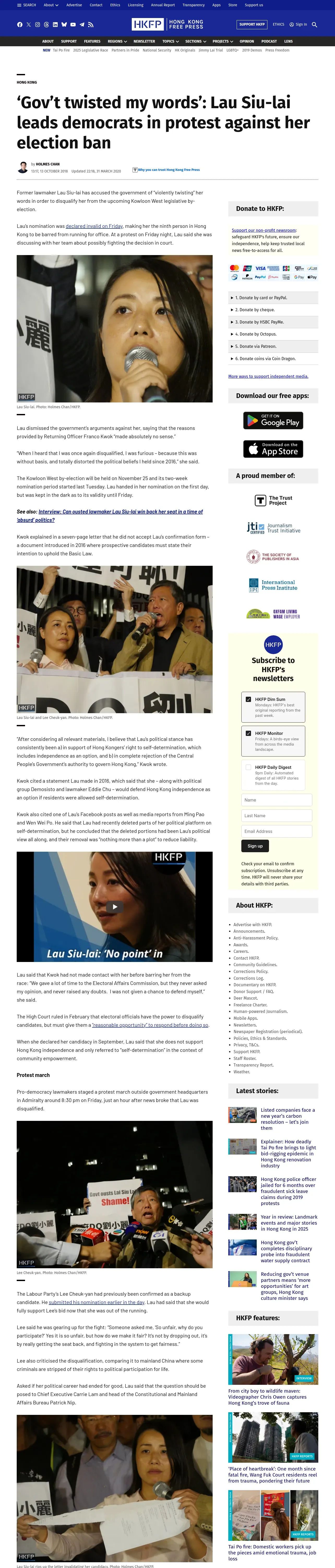 https://hongkongfp.com:443/2018/10/13/govt-twisted-words-lau-siu-lai-leads-democrats-protest-election-ban/