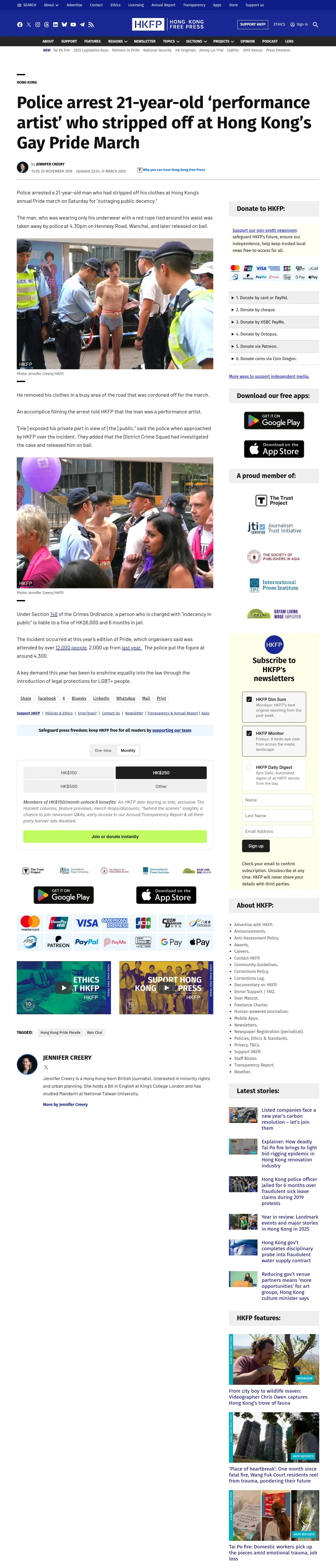取得元URL: https://hongkongfp.com:443/2018/11/20/police-arrest-21-year-old-performance-artist-stripped-off-hong-kongs-gay-pride-march/