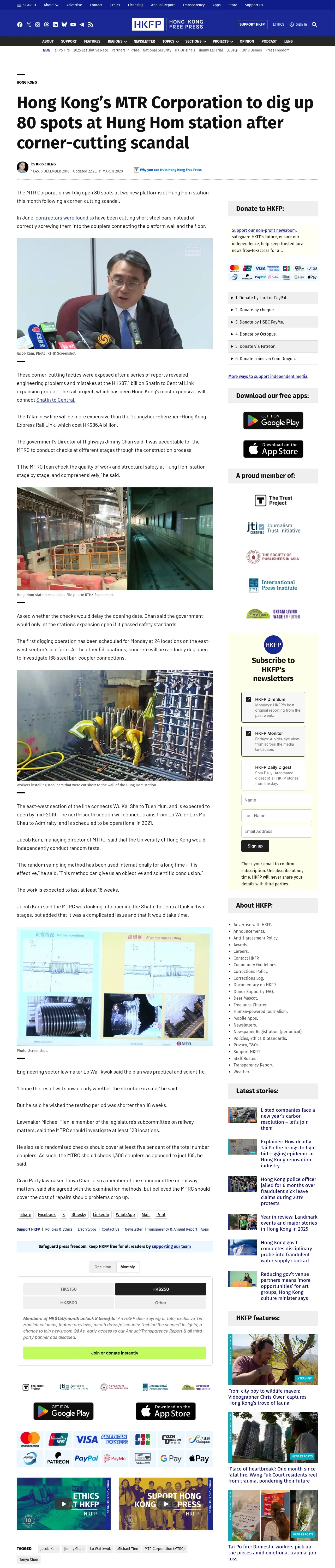 https://hongkongfp.com:443/2018/12/06/hong-kongs-mtr-corporation-dig-80-spots-hung-hom-station-corner-cutting-scandal/