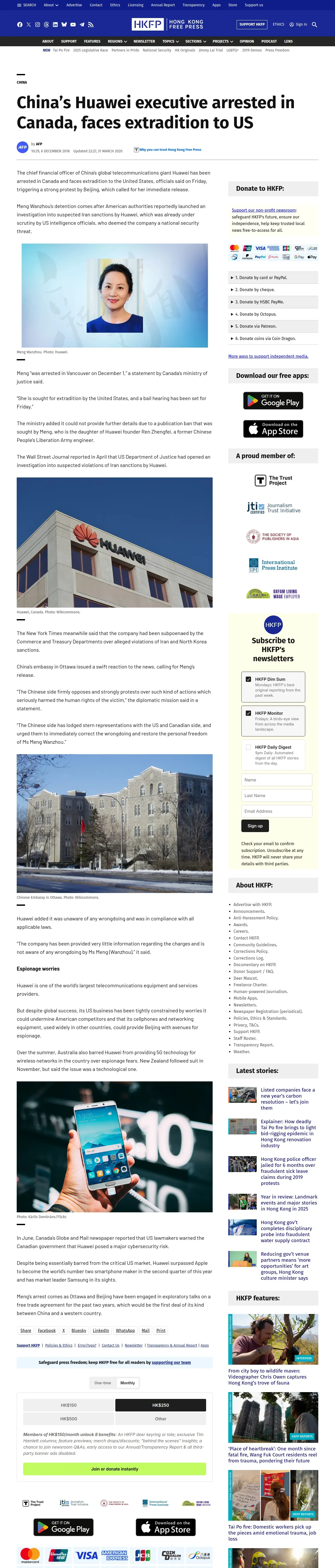 https://hongkongfp.com:443/2018/12/06/chinas-huawei-executive-arrested-canada-faces-extradition-us/