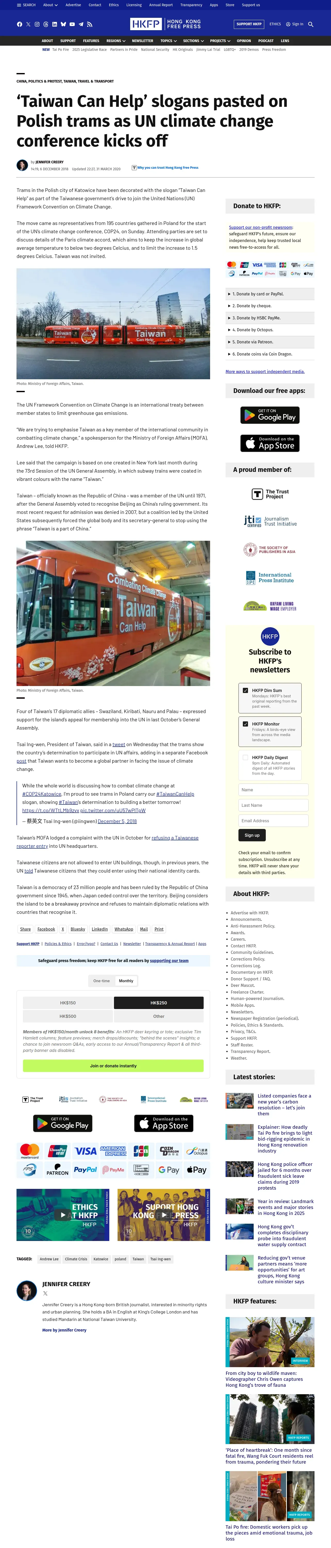 https://hongkongfp.com:443/2018/12/06/taiwan-can-help-slogans-pasted-polish-trams-un-climate-change-conference-kicks-off/