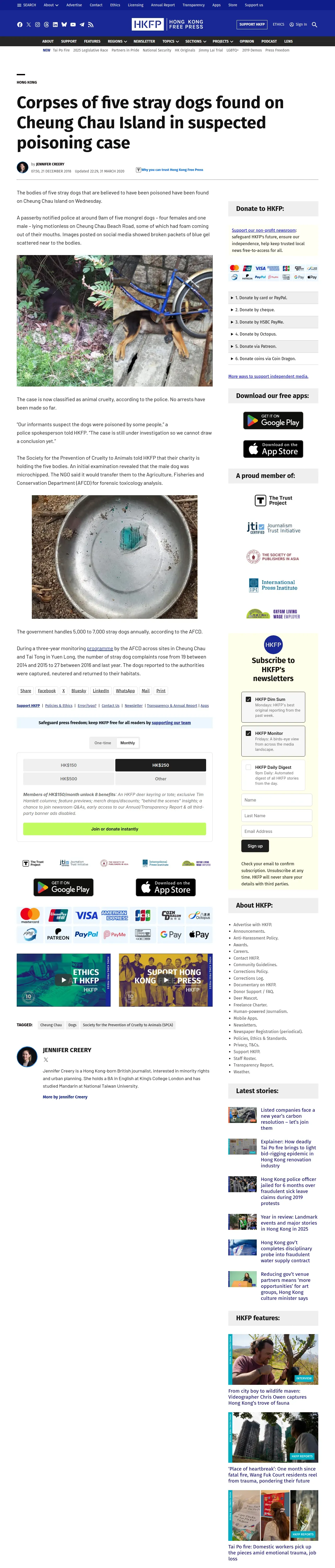 取得元URL: https://hongkongfp.com:443/2018/12/21/corpses-five-stray-dogs-found-cheung-chau-island-suspected-poisoning-case/