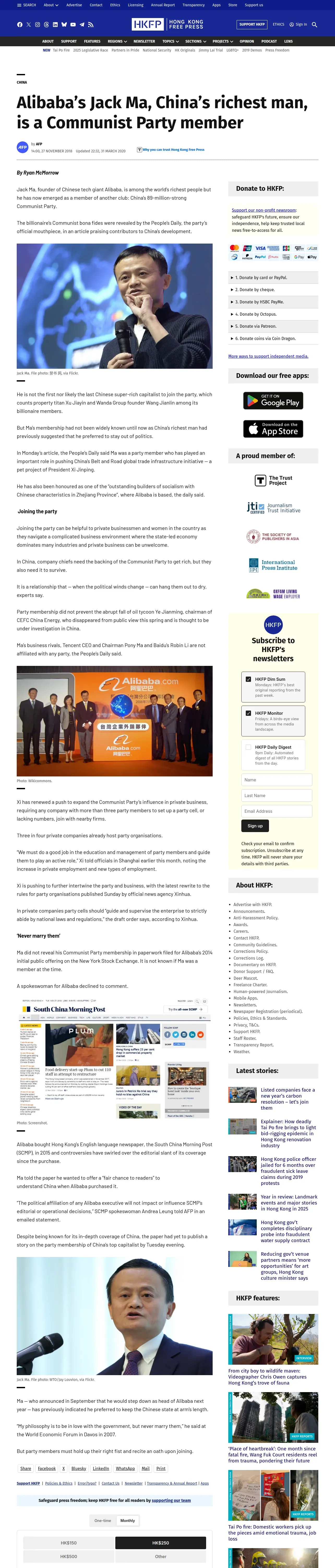 https://hongkongfp.com:443/2018/11/27/alibabas-jack-ma-chinas-richest-man-communist-party-member/