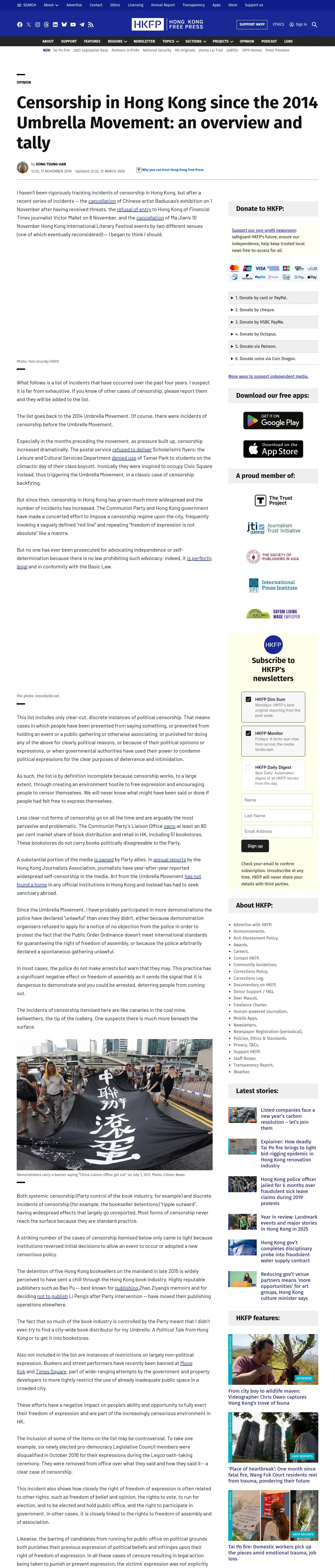 https://hongkongfp.com:443/2018/11/17/censorship-hong-kong-since-2014-umbrella-movement-overview-tally/