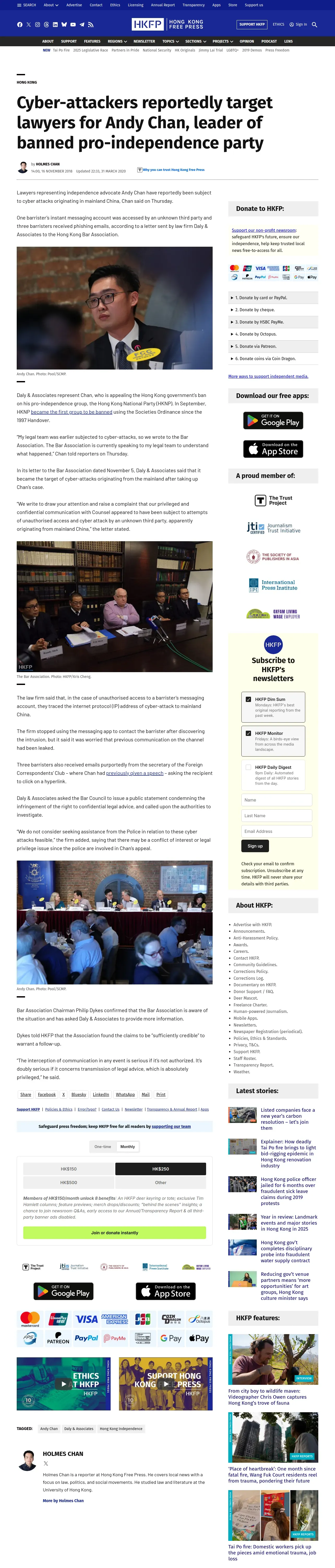 https://hongkongfp.com:443/2018/11/16/cyber-attackers-reportedly-target-lawyers-andy-chan-leader-banned-pro-independence-party/
