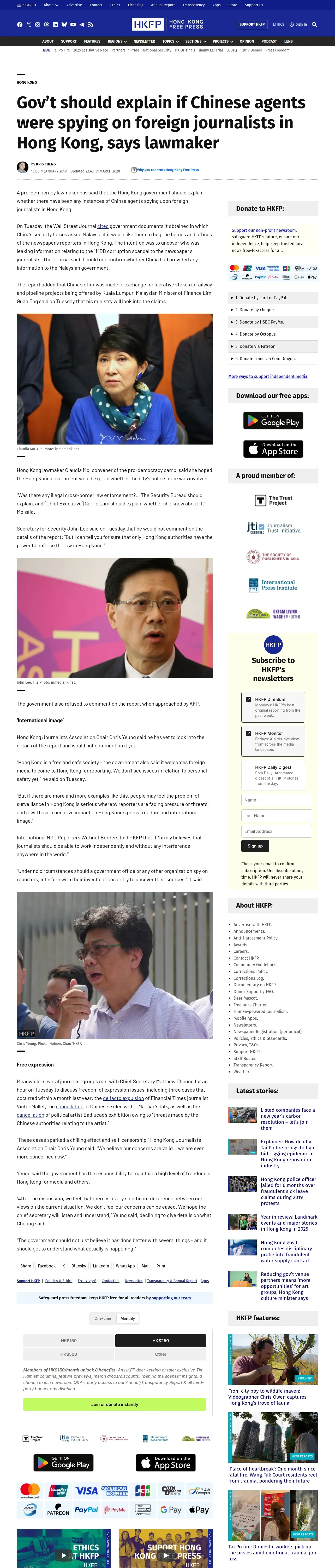https://hongkongfp.com:443/2019/01/09/govt-explain-chinese-agents-spying-foreign-journalists-hong-kong-says-lawmaker/