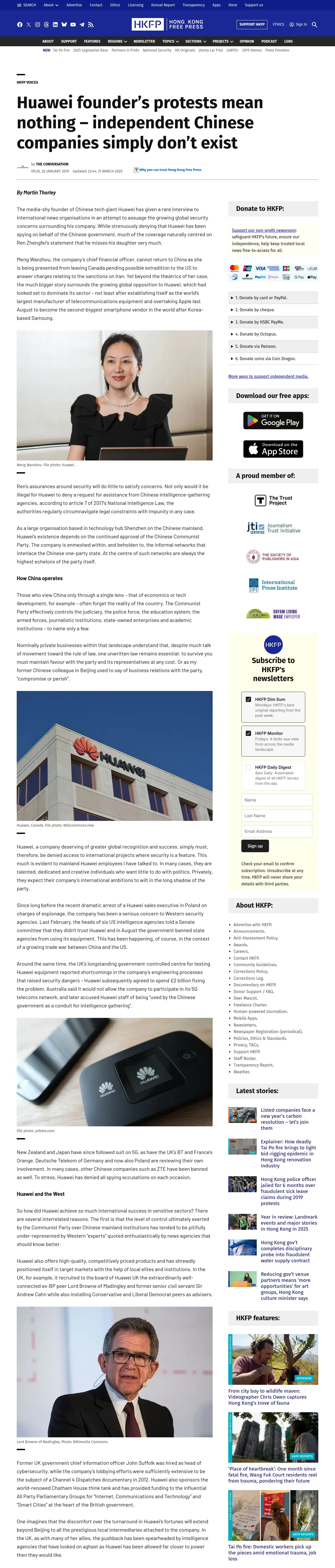 https://hongkongfp.com:443/2019/01/20/huawei-founders-protests-mean-nothing-independent-chinese-companies-simply-dont-exist/
