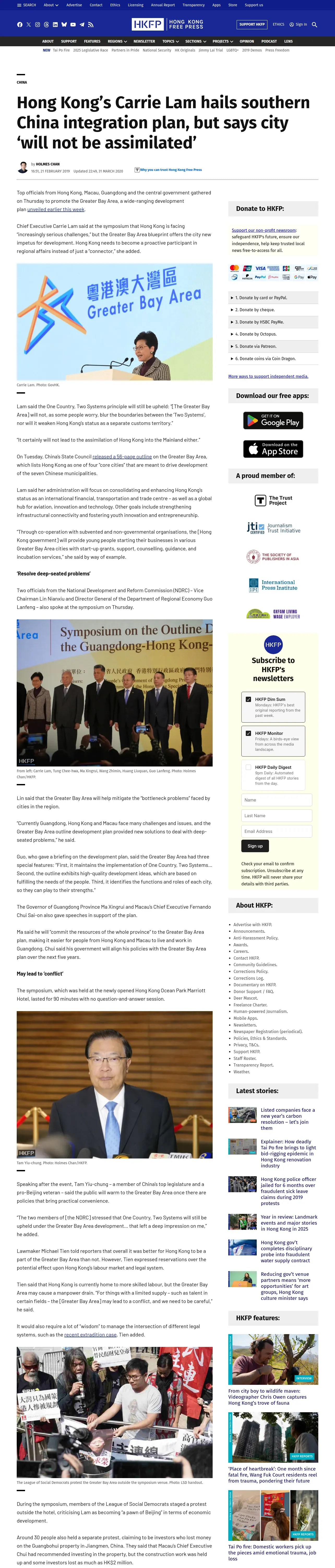 https://hongkongfp.com:443/2019/02/21/hong-kongs-carrie-lam-hails-southern-china-integration-plan-says-city-will-not-assimilated/