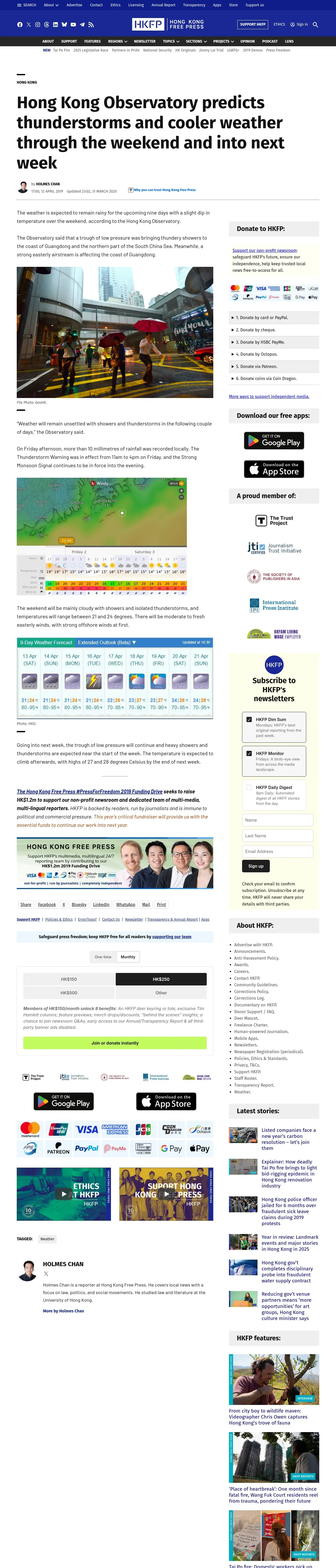https://hongkongfp.com:443/2019/04/12/hong-kong-observatory-predicts-thunderstorms-cooler-weather-weekend-next-week/