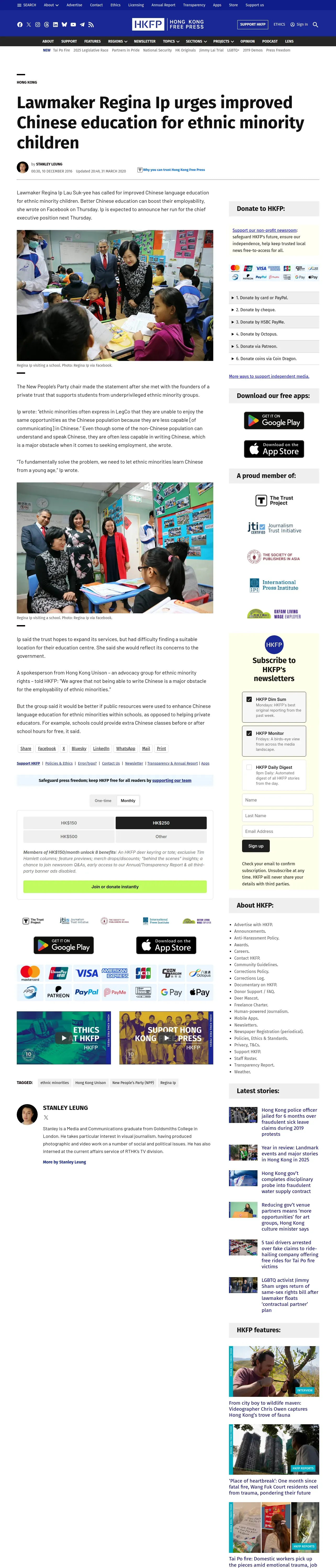 https://hongkongfp.com:443/2016/12/10/lawmaker-regina-ip-urges-improved-chinese-education-ethnic-minority-children/