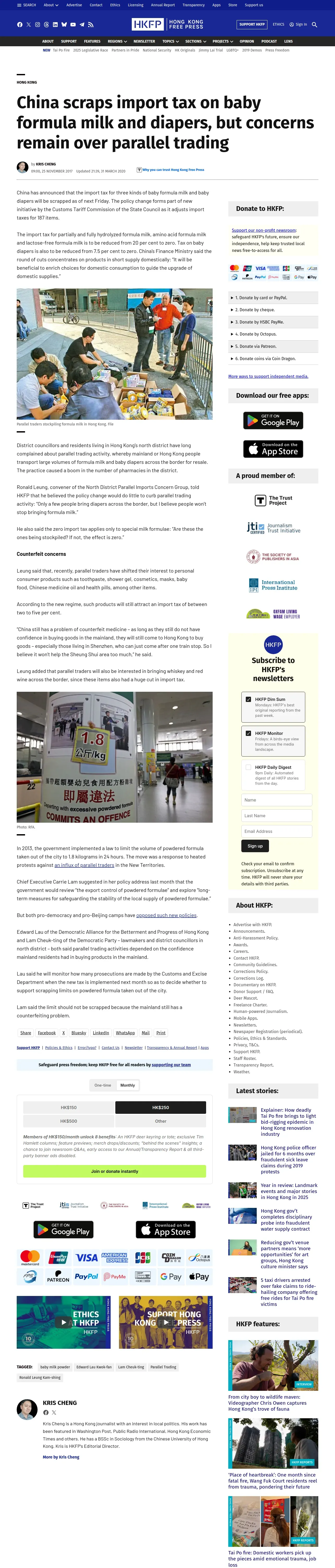 https://hongkongfp.com:443/2017/11/25/china-scraps-import-tax-baby-formula-milk-diapers-concerns-remain-parallel-trading/