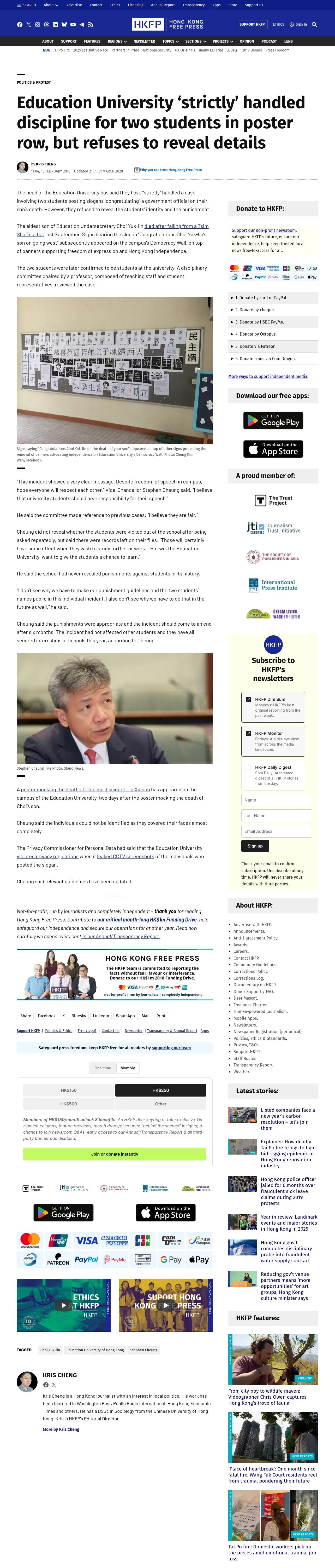 https://hongkongfp.com:443/2018/02/15/education-university-strictly-handled-disciplinary-two-students-poster-row-refuses-reveal-details/
