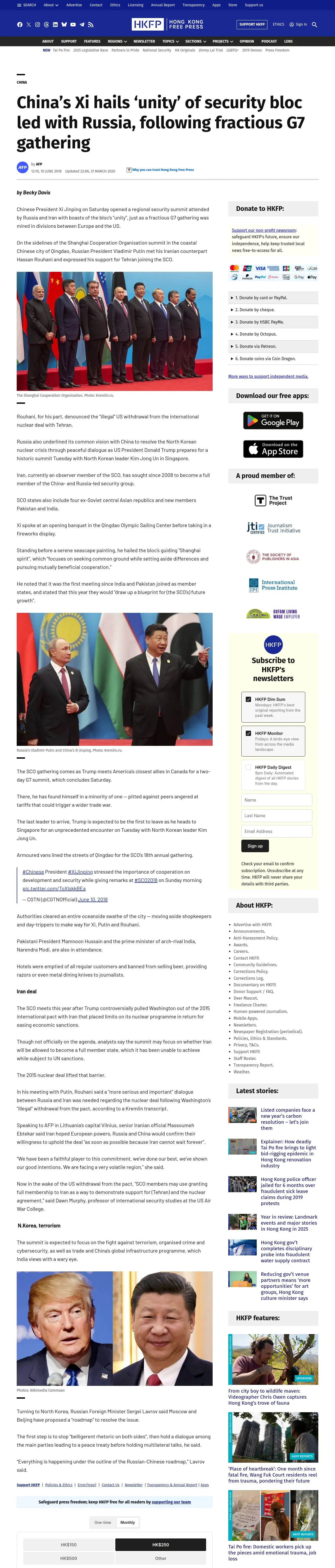 https://hongkongfp.com:443/2018/06/10/chinas-xi-hails-unity-security-bloc-led-russia-following-fractious-g7-gathering/