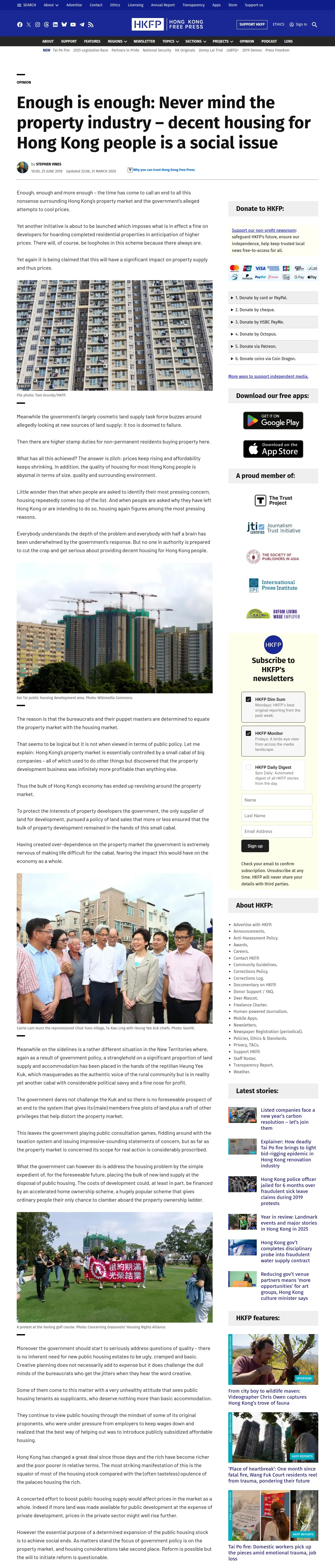 取得元URL: https://hongkongfp.com:443/2018/06/25/enough-enough-never-mind-property-industry-decent-housing-hong-kong-people-social-issue/