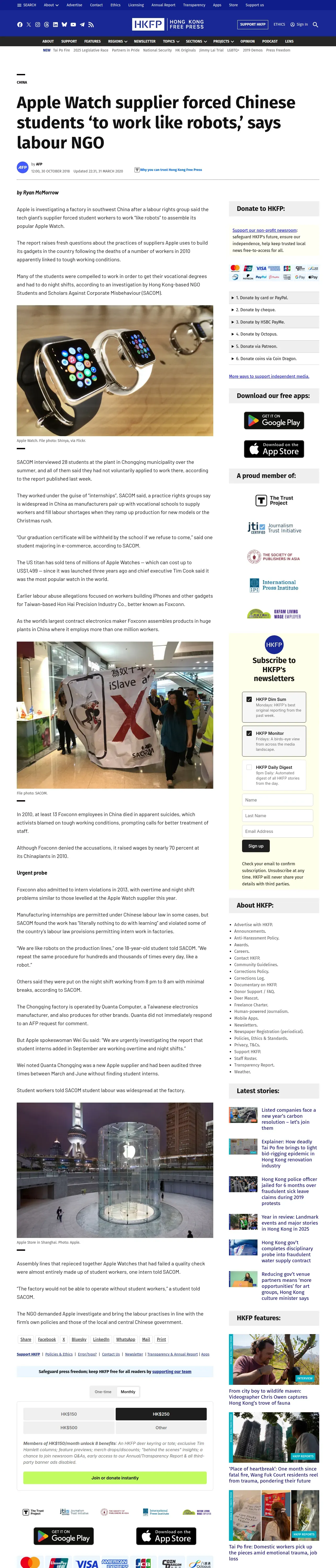取得元URL: https://hongkongfp.com:443/2018/10/30/apple-watch-supplier-forced-chinese-students-work-like-robots-says-labour-ngo/