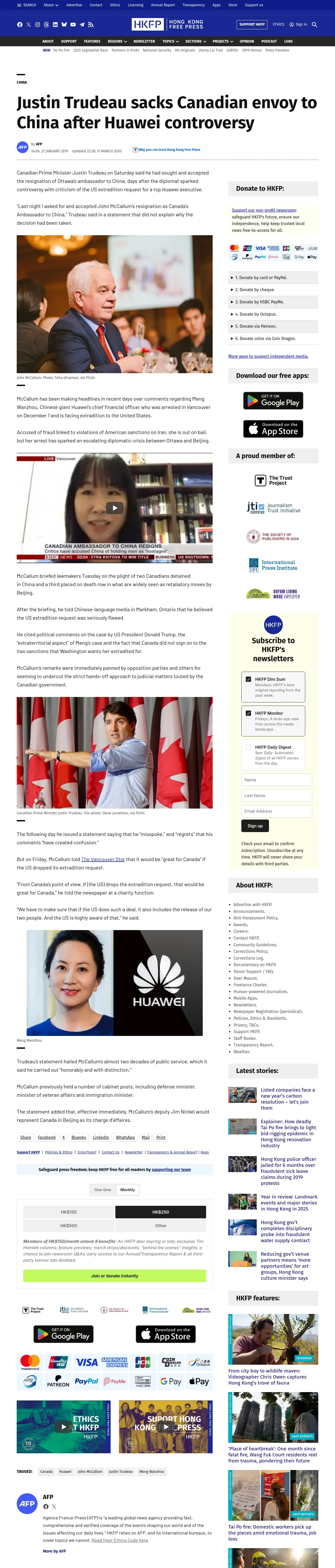 https://hongkongfp.com:443/2019/01/27/justin-trudeau-sacks-canadian-envoy-china-huawei-controversy/