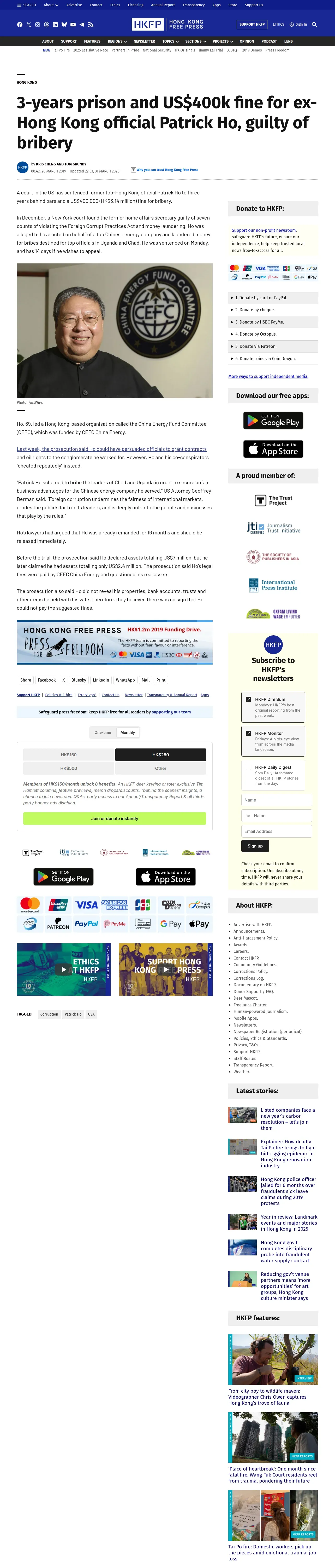 取得元URL: https://hongkongfp.com:443/2019/03/26/breaking-3-years-prison-us400k-fine-ex-hong-kong-official-patrick-ho-guilty-bribery/